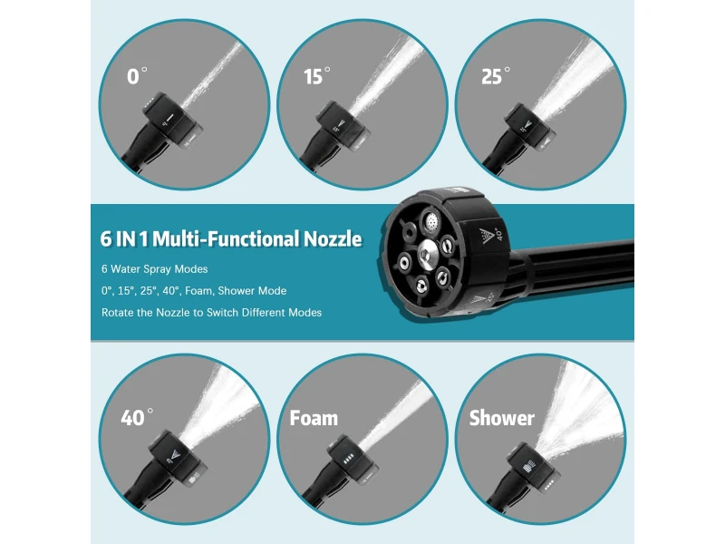 • Duză 6 în 1 pentru diferite moduri de jet (moale, puternic, pulsatoriu etc.)