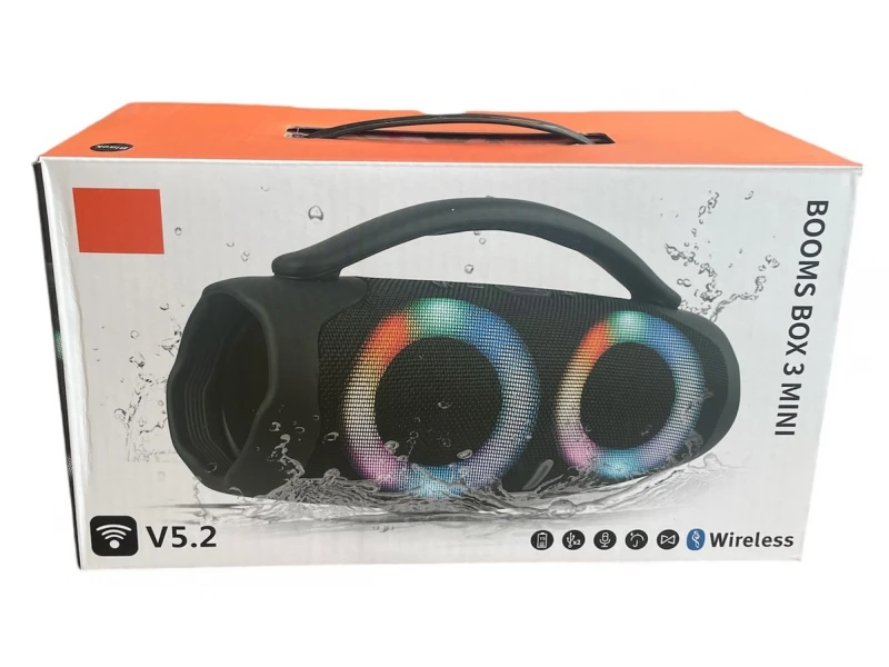 Boxă Bluetooth portabilă puternică Booms Box 3 Mini RGB - Neagră