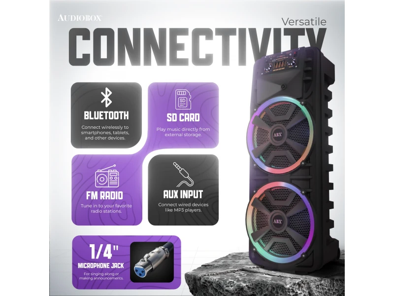 • Sunet puternic: Două difuzoare de 12 inci oferă un sunet plin și puternic, care va cuceri orice cameră.