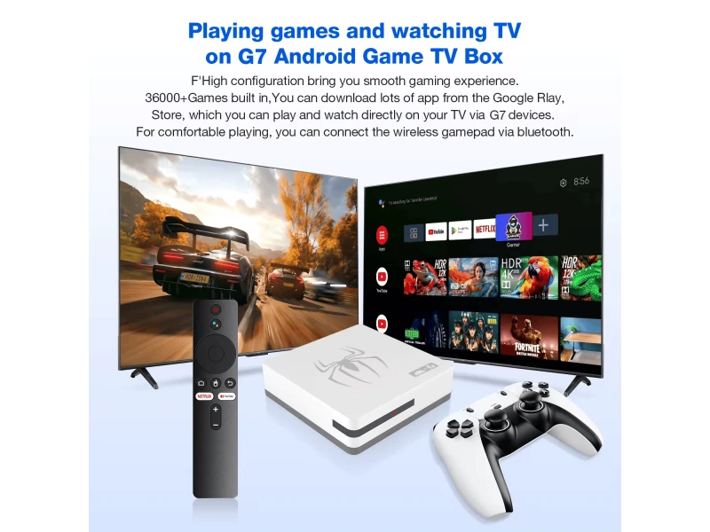 Boxă TV pentru gaming G7 Android 14 Plus cu 30.000 de jocuri + WIFI 2 joystick-uri