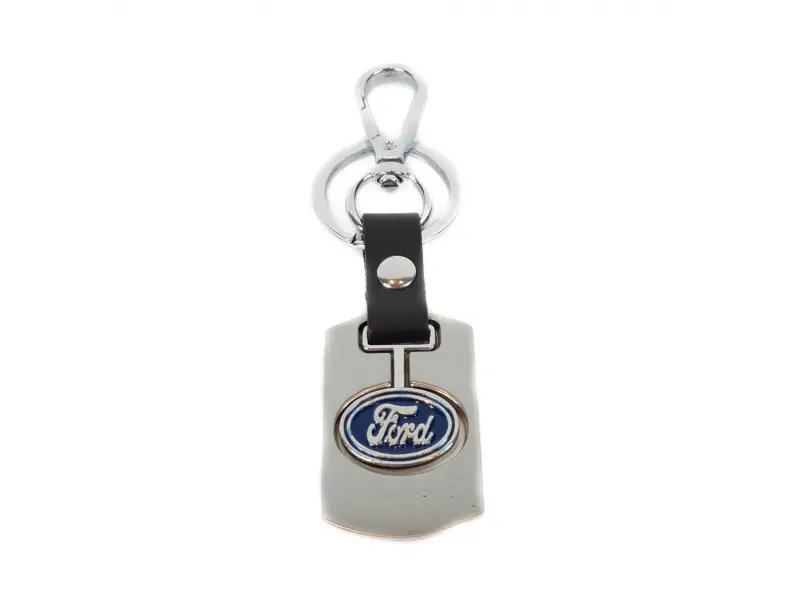 Breloc marca Ford cu inel și opțiune de agățare. Cadou ideal pentru fanii și posesorii de mașini Ford.