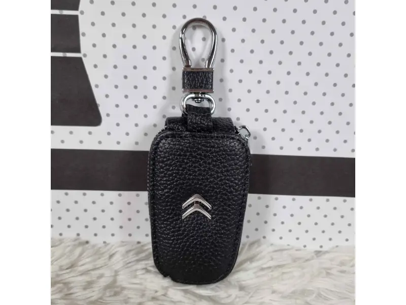 Breloc de înaltă calitate, din piele naturală, de culoare neagră. Un cadou ideal pentru fanii și posesorii de mașini Citroën.