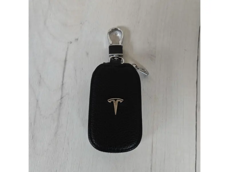 Breloc elegant cu marca Tesla Breloc de înaltă calitate, din piele naturală, de culoare neagră. Un cadou ideal pentru fanii și posesorii de mașini Tesla.