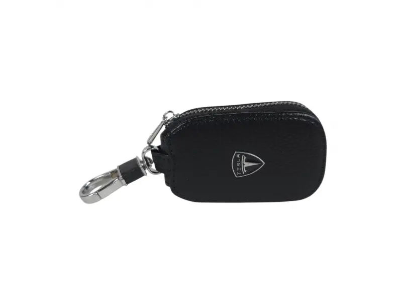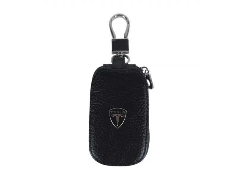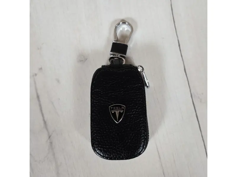 Breloc de înaltă calitate, din piele naturală, de culoare neagră. Un cadou ideal pentru fanii și posesorii de mașini Tesla.