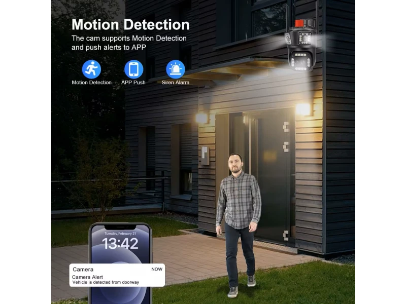 Cameră IP WiFi inteligentă triplă de 12MP cu obiectiv dual și zoom 10× - Supraveghere video inteligentă 📷 Asigurați calitate superioară și protecție completă cu această cameră IP WiFi modernă, cu trei senzori, lentilă dublă pentru detalii superioare și un zoom digital puternic de 10×. Potrivită pentru instalare în exterior datorită protecției IP66 și construcției robuste. Instalare ușoară și conectivitate wireless 🛠️ Instalare în câteva minute prin aplicația iCSee (iOS/Android) sau browser Nu este nevoie de cabluri - conectați-vă doar la o rețea WiFi de 2,4 GHz Adaptor de 12 V/2 A și accesorii de montare incluse Funcții inteligente de securitate 🚨 Recunoaștere facială Detectarea feței prin inteligență artificială notifică doar subiecții umani Detectarea mișcării Înregistrare și notificare push la detectare Alarmă în timp real pe telefonul tău Calitate a imaginii și vedere nocturnă 🎥🌙 Obiectiv dual de 12 MP + zoom 10× Imagine extrem de detaliată chiar și de la distanță mare Iluminare cu infraroșu și LED Vizibilitate de până la 30-50 m în întuneric complet Viziune nocturnă color datorită panourilor LED încorporate Panoramare și control 🔄 Rotație orizontală 320° × verticală 110° Urmărirea obiectelor pe întreaga rază de acțiune Audio și înregistrare 💾🎤 Microfon și difuzor încorporate pentru sunet bidirecțional Suportă carduri MicroSD de până la 128 GB (nu sunt incluse) Compresie H.265 eficientă pentru o locație optimă Protecție fiabilă pentru condiții exterioare ☔ Carcasă impermeabilă IP66 - rezistentă la ploaie, praf și temperaturi extreme Inclus 📦 1× Cameră IP triplă de 12 MP cu obiectiv dual și zoom 10× 1× Adaptor de alimentare 12 V/2 A Kit de montare (dibluri, șuruburi, garnituri de cauciuc) Instrucțiuni în limba engleză