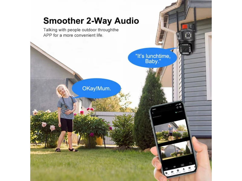 • Cameră IP WiFi inteligentă triplă de 12MP cu obiectiv dublu și zoom 10× iCSee