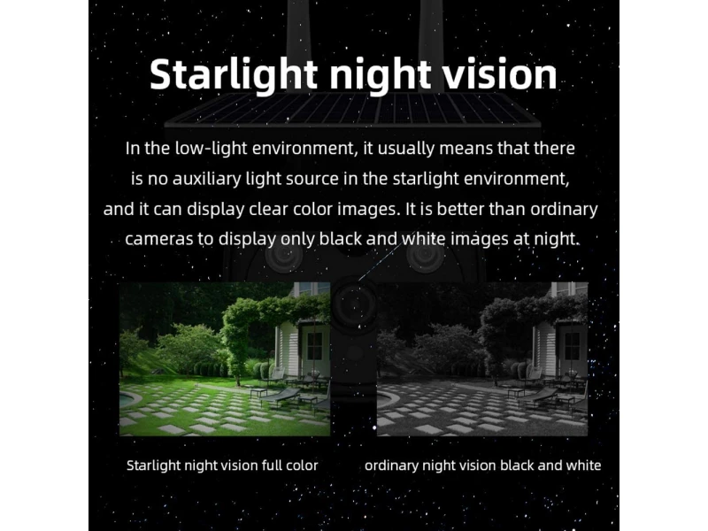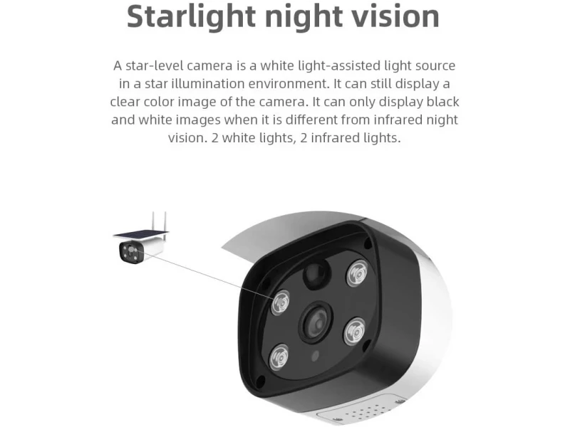 Cameră impermeabilă cu panou solar, cameră solară cu acoperire completă, cu lumină stelară de consum redus de energie