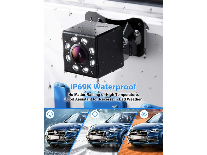 • Cameră video spate cu mod nocturn, 8 LED-uri