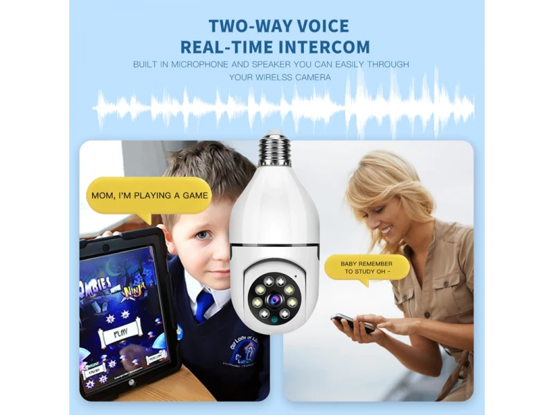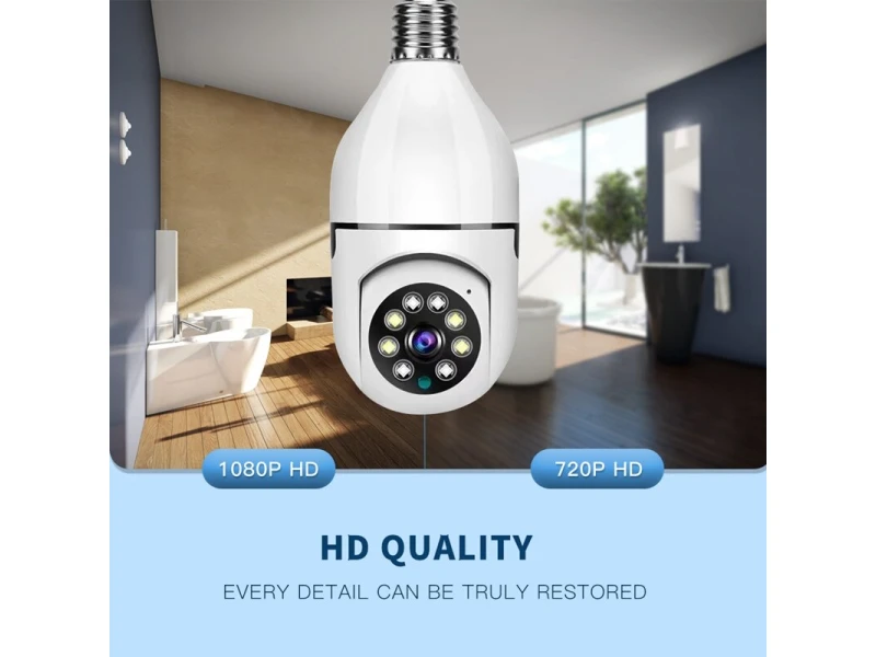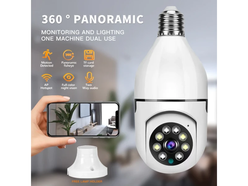 Cameră dome inovatoare de tip bec, cu unghi de vizualizare de 360° și microfon încorporat, ideală pentru supraveghere video ascunsă, acasă, la birou sau în spații comerciale.