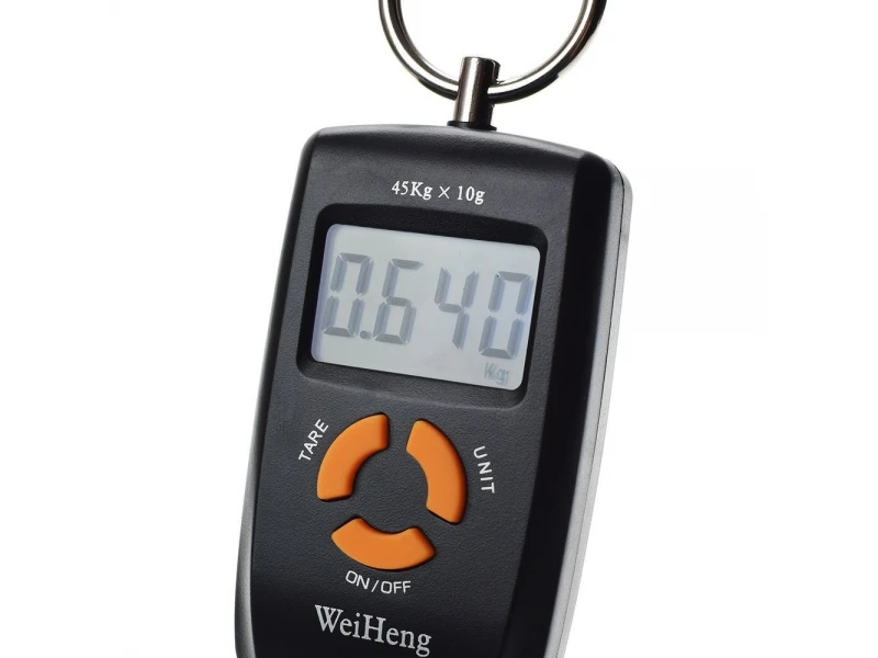 Cântar electronic portabil până la 45 kg. Cântar electronic portabil cu dimensiuni compacte, potrivit pentru pescuit, uz casnic etc. Forma ergonomică a cântarului îl face confortabil de ținut în palmă și de cântărit greutăți mici, iar inelul de pe cântar este potrivit pentru agățarea și cântărirea greutăților mai mari. Sarcină maximă: 45 kg. Precizie: 10 grame Ecran LCD mare cu iluminare din spate; Funcție tară/net; Funcția „HOLD” pentru salvarea citirii; Resetare automată; Oprire automată dacă nu este utilizat mai mult de 2 minute; Diferite unități de măsură: kg / lb / oz; Semnalizare sonoră; Alimentare cu 3 baterii AAA de 1,5V - incluse în set; Cârlig metalic retractabil în carcasă; Dimensiuni: 7,8 x 5 x 2 cm. (fără cârlige) Setul include: Cântar electronic până la 45 kg - 1 buc. Baterii AAA - 2 buc.