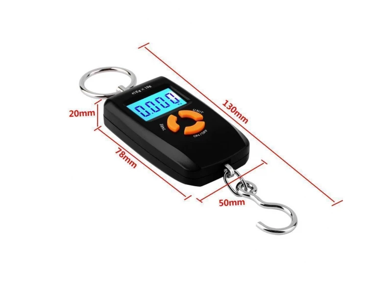 Cântar electronic portabil cu dimensiuni compacte, potrivit pentru pescuit, uz casnic etc. Forma ergonomică a cântarului îl face confortabil de ținut în palmă și de cântărit greutăți mici, iar inelul de pe cântar este potrivit pentru agățarea și cântărirea greutăților mai mari.