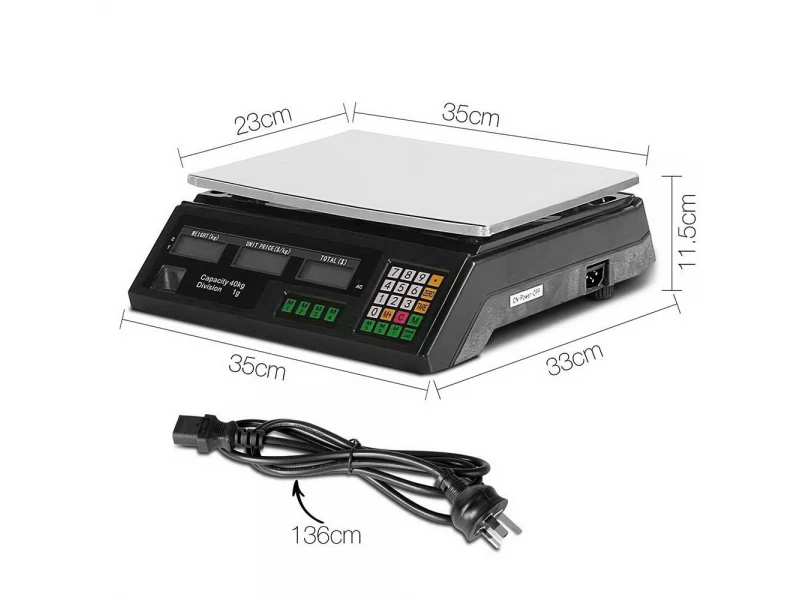 Cântar electronic de până la 40 kg cu platformă de 23 × 35 cm.