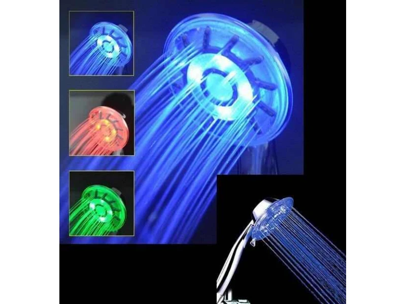 Cap de duș LED care strălucește în 3 culori diferite Piesa de mână este standard și compatibilă cu orice baterie de duș. Trebuie doar să scoateți vechiul cap de duș și să îl introduceți pe cel nou. Cum funcționează: Setul cu cască are un senzor de temperatură și luminează într-o culoare diferită în funcție de temperatura apei. LED-urile sunt alimentate de un mini generator încorporat în setul cu cască, care este alimentat de jetul de apă și funcționează fără baterii. La temperaturi ale apei sub 25 °C, luminează verde de la 26 °C la 35 °C strălucește în albastru de la 35 °C la 45 °C se aprinde în roșu Peste 46 °C, clipește în roșu și albastru, avertizând asupra temperaturii ridicate a apei. Caracteristici: 9 LED-uri 3 culori de iluminare: verde/albastru/roșu (în funcție de temperatura apei) material: ABS Acoperire: galvanizare Culoare: crom Produsul este certificat conform standardelor europene: CE și ROSH Când apa curge, robinetul de duș se va aprinde instantaneu și automat Nu folosește baterii!
