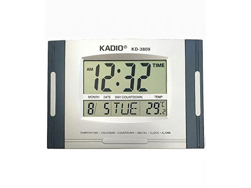 Ceas electronic multifuncțional KADIO KD-3809N, mare, de masă și de perete, cu alarmă, calendar și multe funcții.