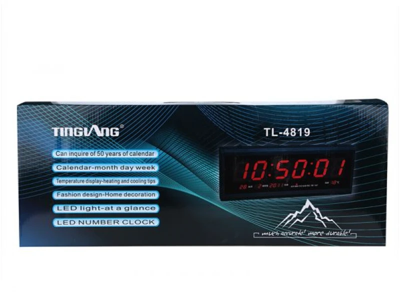 Ceas electronic LED TINGIANG TL-4819, practic și elegant, cu cifre mari, ușor de citit. Perfect pentru casă, birou, școli și clădiri publice. 📅🌡️