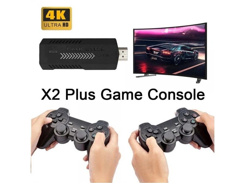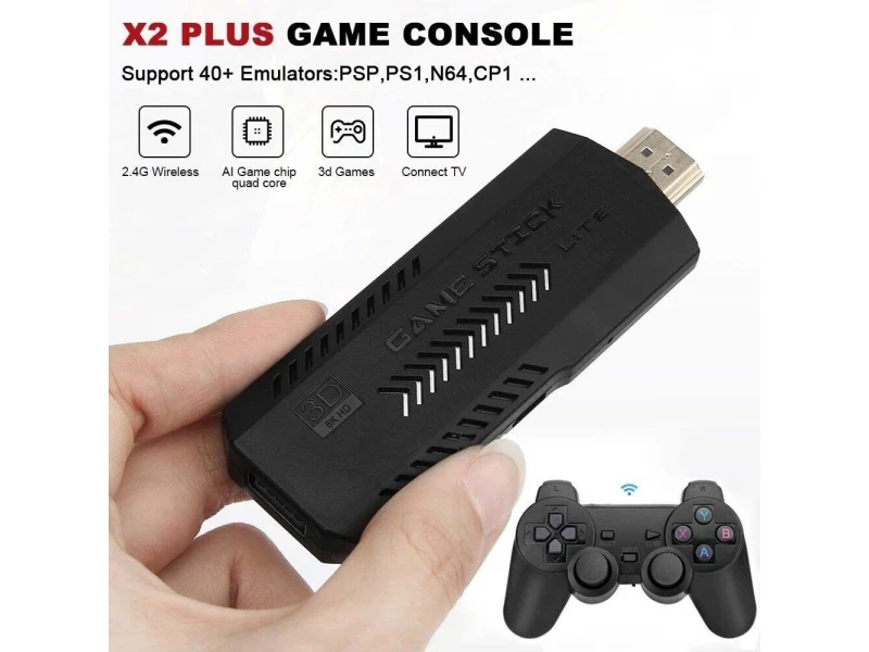 Consolă retro wireless Game Stick X2, 40.000 de jocuri video, 9 emulatoare, 128 GB, 2x controller wireless 2.4 GHz