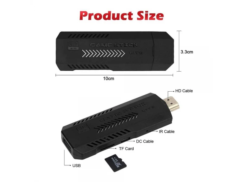 Descriere produs: Peste 40.000 de jocuri încorporate Consola oferă o varietate de jocuri clasice: Jocuri arcade retro Jocuri de logică și matematică Sporturi, puzzle-uri, tiruri, acțiune Jocuri de curse, lupte, strategie și aventură Jocuri de cărți și multe altele Compatibilitate cu diverse dispozitive Potrivit pentru televizoare, monitoare, proiectoare și computere 8K Ultra HD Conexiune prin ieșire HDMI pentru înaltă definiție Performanță îmbunătățită Echipat cu procesor RK3128 pentru încărcare rapidă și o experiență de joc fluidă Suportă 9 emulatoare , inclusiv: MAME, PS1, GB, GBA, GBC, MD, SFC, FC și ATARI Funcții de bază ale meniului Listă de jocuri: Vezi toate jocurile disponibile Clasificare: Identificarea jocurilor după emulator Istoric: Înregistrează meciurile jucate recent Jocuri preferate: Adăugați jocurile preferate într-o listă separată Căutare: Găsiți rapid jocuri după nume Controlere de înaltă durabilitate Controlere wireless de 2,4 GHz pentru jocuri confortabile Joystick-uri antiderapante cu durabilitate îndelungată Compact și practic Design convenabil și discret, potrivit pentru orice cameră Ușor de transportat și instalat Conținutul kitului: 2 x Controlere wireless 1 x Stick de joc x2 1 cablu USB 1 x card TF cu jocuri preîncărcate 1 x Manual de utilizare