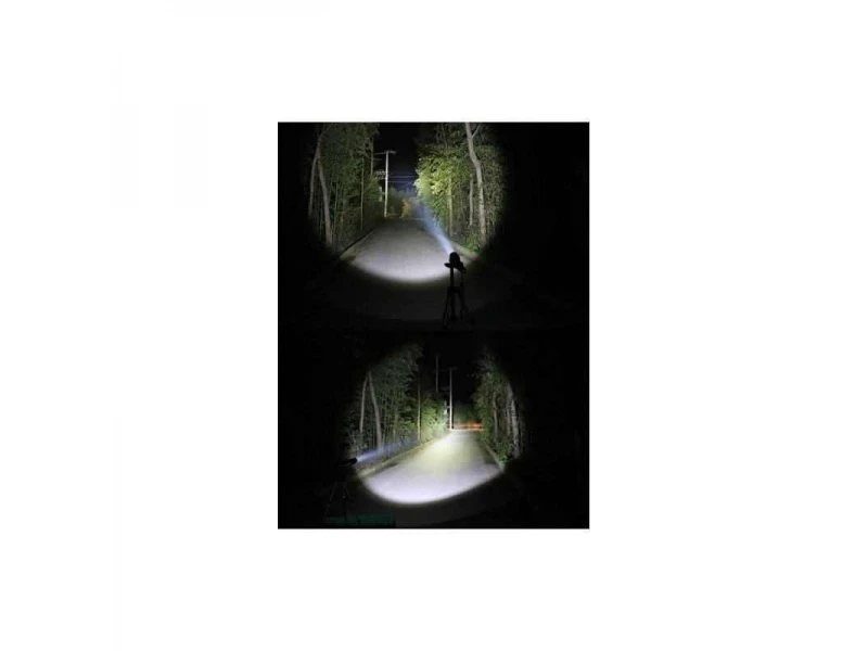 Setul include: lanternă, încărcător de 220V, încărcător de 12V și 2 baterii 18650. Lanterna LED este ușoară și compactă, cu un mâner de transport confortabil, fiabilă, rezistentă la șocuri, umezeală și carcasă din aluminiu. Emițătorul Cree și reflectorul de calitate oferă un fascicul puternic și concentrat, cu o distanță de lucru efectivă de până la 300m.