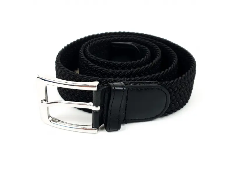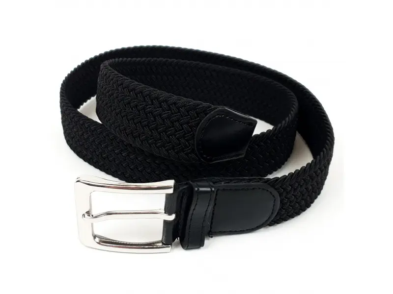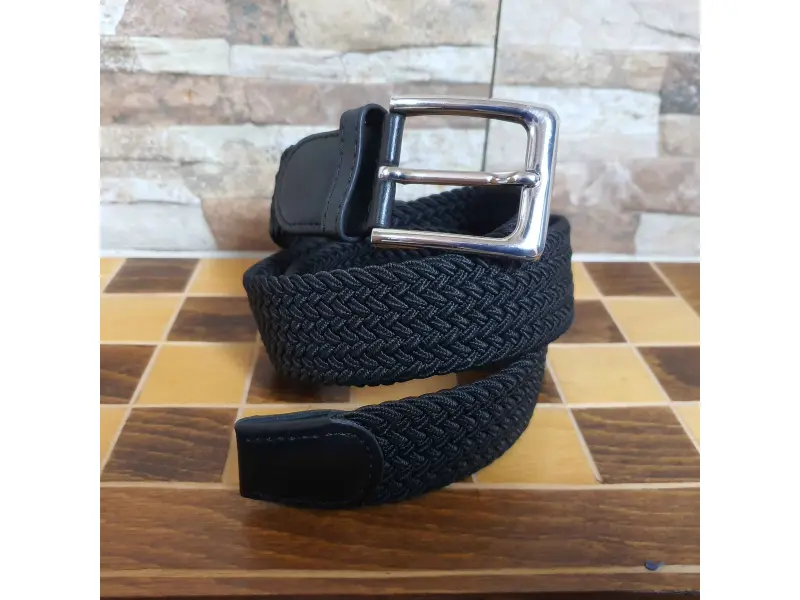 Curea elastică neagră pentru bărbați, cu țesătură rezistentă pe fante, cataramă metalică. Curea neagră este confecționată dintr-o tehnologie specială care nu permite curelei să se întindă mai mult decât este de așteptat. Avantajul este că poate fi fixată pe întreaga lungime a curelei.