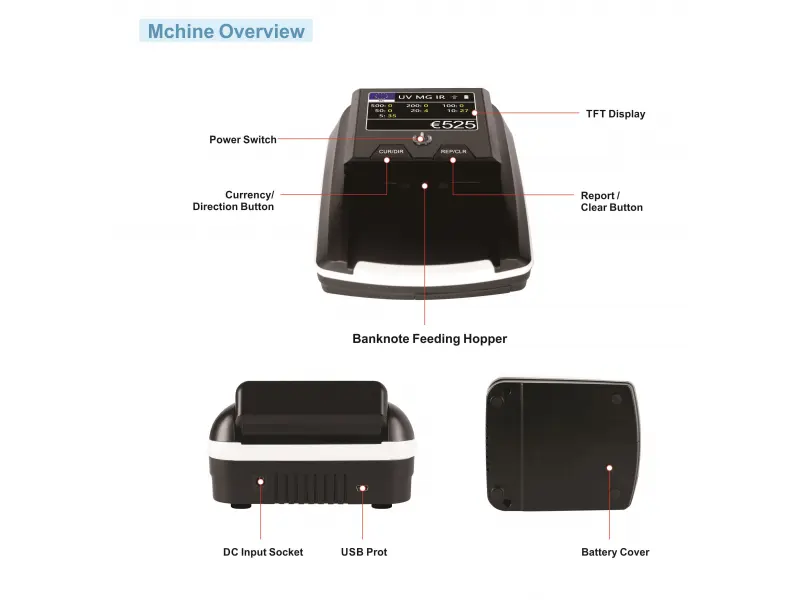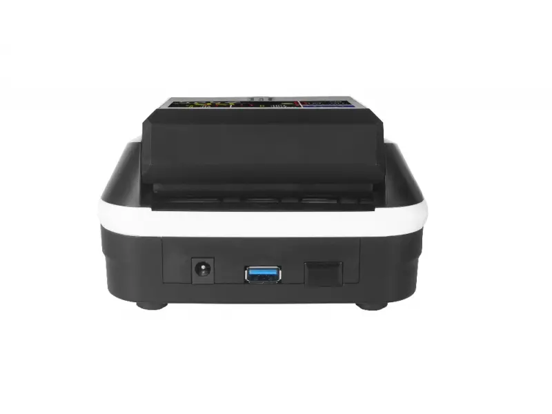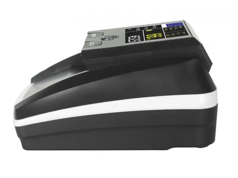AL-136T este un detector compact și profesional pentru verificarea rapidă și sigură a bancnotelor. Funcționează cu protecție combinată prin detecție UV, MG și IR , precum și cu control suplimentar al hârtiei, grosimii și dimensiunii . Acceptă introducerea bancnotelor în 4 direcții , recunoaște automat moneda și calculează atât numărul de bancnote, cât și suma totală . Verificarea se efectuează în mai puțin de 0,5 secunde per bancnotă , iar bateria reîncărcabilă încorporată 🔋 îl face convenabil pentru munca mobilă.