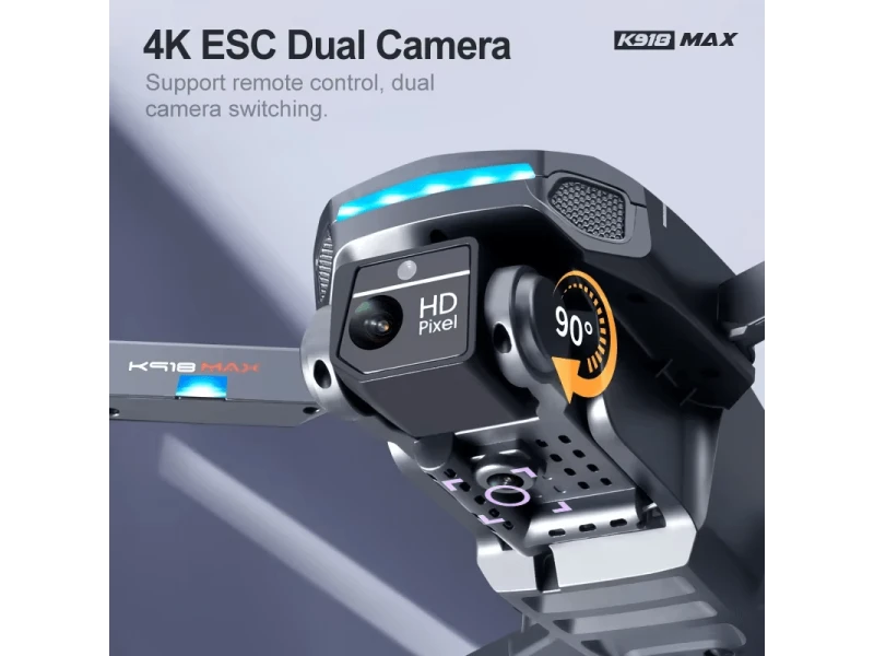 Această dronă pliabilă 4K K918 MAX oferă o combinație impresionantă de caracteristici și îmbunătățiri.