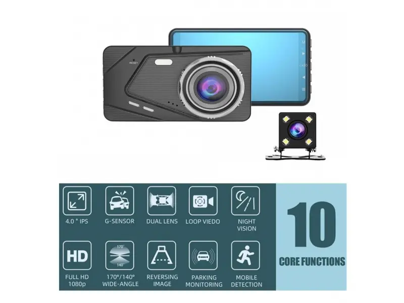 Vă prezentăm DVR-ul Full HD 1080P - o soluție inovatoare pentru siguranță și securitate în timpul condusului. Cu acest DVR veți surprinde fiecare detaliu al drumului, datorită camerei duale și unghiului larg de filmare de 170° . De asemenea, kit-ul include o cameră video pentru marșarier, care este ușor și rapid de instalat.