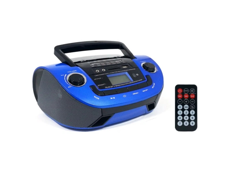 Combinație între un receptor radio și un sistem muzical care redă fișiere MP3 de pe memorie flash prin USB sau direct de pe cardul de memorie SD. Caracteristici tehnice: – Putere: 2 x 5W – Antenă telescopică – 360 de grade – Tuner de înaltă sensibilitate – Benzi radio: AM/FM/SW Tuner de bandă 1-24 – Slot pentru unitate flash USB – Slot pentru card de memorie Micro SD – Intrare pentru dispozitiv extern – GSM, MP3 etc. – Ieșire AUX – 3,5 mm pentru căști – Telecomandă – Mâner de transport – Indicație baterie descărcată – Alimentare: posibilitate de funcționare cu 4 baterii R20 – Alimentare: baterie litiu-ion reîncărcabilă încorporată de 2000 mAh – Dimensiuni: l/î/aprox. – 25 / 17 / 10 cm