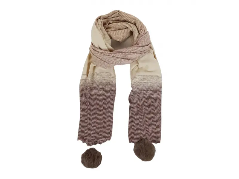 Eșarfă de damă moale și confortabilă, potrivită atât pentru zilele reci de toamnă, cât și pentru sezonul de iarnă. Eșarfă de damă cu o combinație interesantă de culori, cu 65% vâscoză și 35% lână. Eșarfă cu bile detașabile din puf, fixată cu un ac de siguranță.