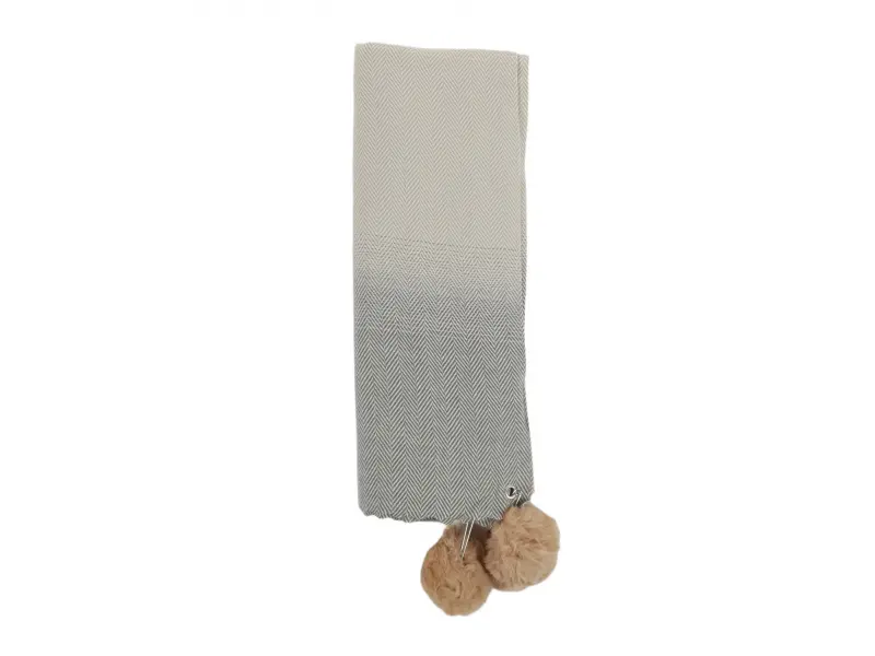 Eșarfă de damă moale și confortabilă, potrivită atât pentru zilele reci de toamnă, cât și pentru sezonul de iarnă. Eșarfă de damă cu o combinație interesantă de culori, cu 65% vâscoză și 35% lână. Eșarfă cu bile detașabile din puf, fixată cu un ac de siguranță.