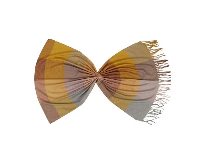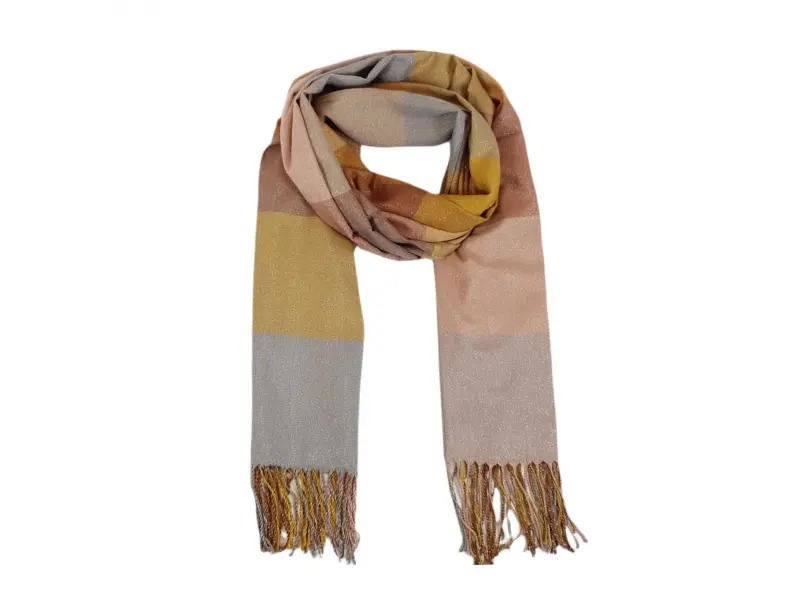 Eșarfă de damă moale și confortabilă, cu o combinație interesantă de culori. Eșarfa este confecționată dintr-o combinație de 70% bumbac și 30% fir metalic.