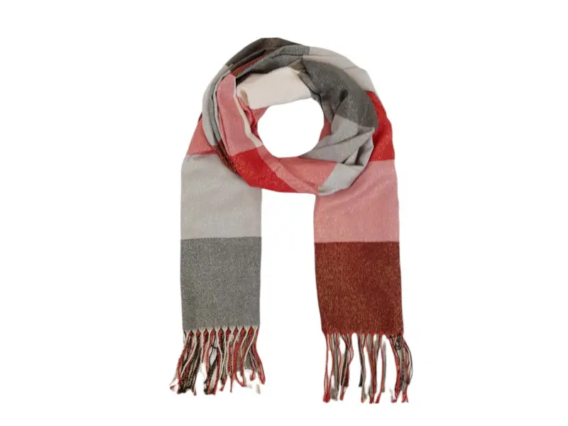 Eșarfă de damă moale și confortabilă, cu o combinație interesantă de culori. Eșarfa este confecționată dintr-o combinație de 70% bumbac și 30% fir metalic.
