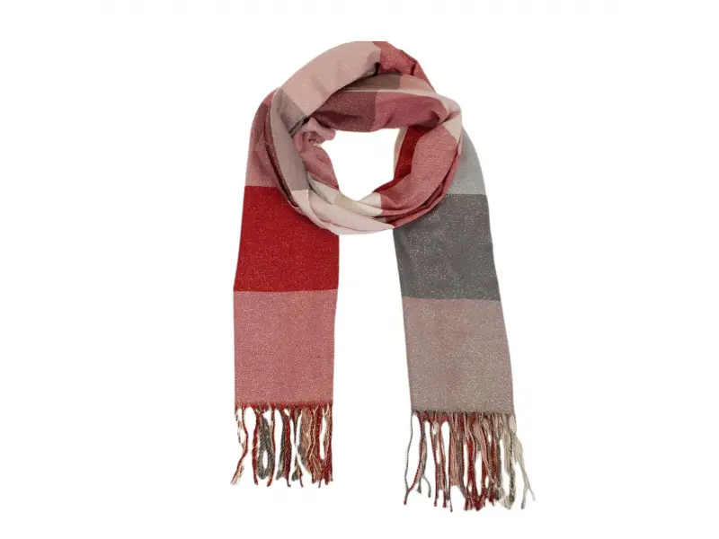 Eșarfă de damă moale și confortabilă, cu o combinație interesantă de culori. Eșarfa este confecționată dintr-o combinație de 70% bumbac și 30% fir metalic.
