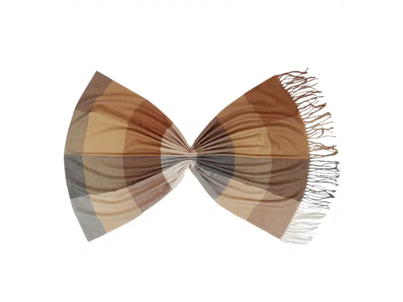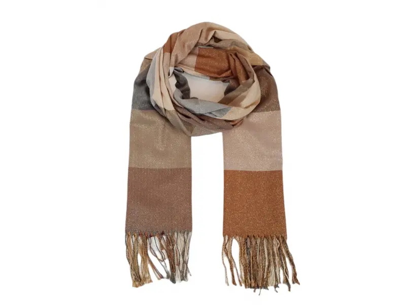 Eșarfă de damă moale și confortabilă, cu o combinație interesantă de culori. Eșarfa este confecționată dintr-o combinație de 70% bumbac și 30% fir metalic.