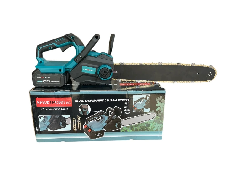 Motoferăstrăul fără fir cu filtru de ulei este unealta ideală pentru tăierea rapidă și eficientă a lemnului, crengilor și buștenilor. Cu baterii puternice, o lamă de ghidare lungă de 40 cm și lubrifiere automată a lanțului, asigură performanțe ridicate și o durată lungă de viață. Principalele avantaje: ✅ Lungimea barei: 40 cm - potrivită pentru copaci medii și mari. ✅ Lubrifiere automată a lanțului - pentru o funcționare lină și eficientă. ✅ Motor fără perii - durată de viață mai lungă și consum redus de energie. ✅ Design ergonomic - mâner confortabil pentru o prindere stabilă și confort în timpul lucrului. ✅ Fără emisii nocive și nivel redus de zgomot - o alternativă ecologică și silențioasă la drujbele pe benzină. Setul include: 2 lanțuri – pentru o muncă eficientă și de lungă durată. 2 baterii de 36V 10Ah – durată lungă de viață și funcționare fiabilă fără întrerupere. Încărcător – încărcare rapidă pentru confort maxim. Șurubelniță – pentru reglare și întreținere ușoară. Durabilitate și putere pentru fiecare proiect! Indiferent dacă tăiați crengi în grădină sau lemne de foc, acest set vă va oferi o muncă ușoară și sigură. Gata de lucru – Tot ce ai nevoie într-un singur kit!