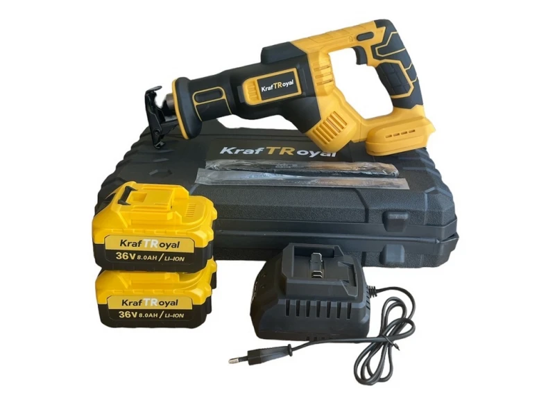 Ferăstrău sabie fără fir KraftRoyal 36v cu 2 baterii 8ah, încărcător și geantă