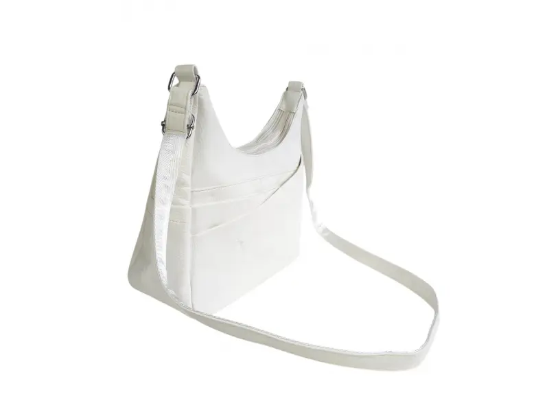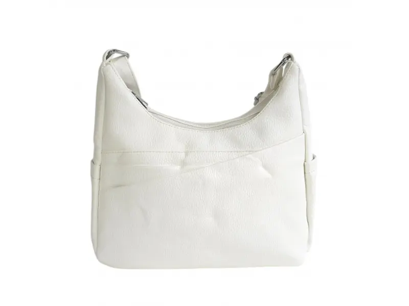 Geantă de mână medie, confecționată din piele ecologică de calitate. Geantă albă cu multe compartimente și mâner lung reglabil. Geantă de mână de zi cu zi, cu un design interesant.