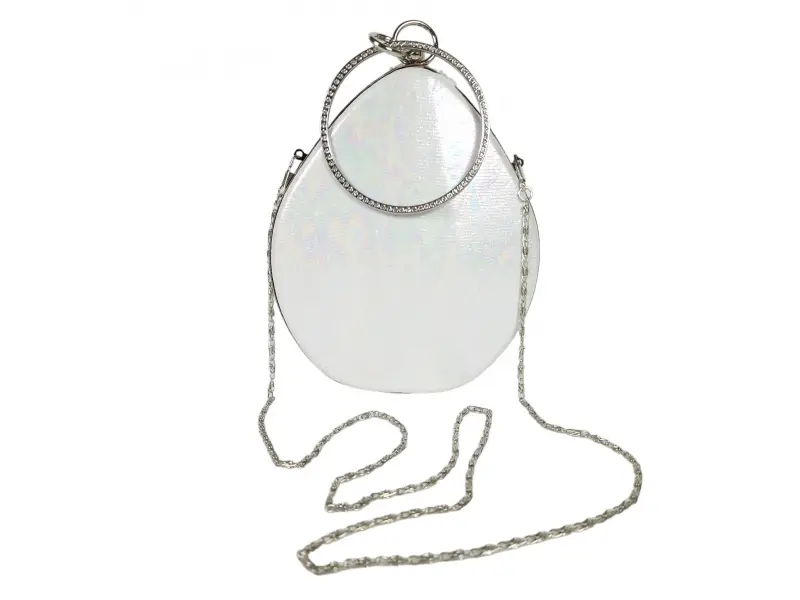 Geantă albă de absolvire - Geantă de mână formală cu un singur compartiment. - Deschidere și închidere cu mecanism. - Margini metalice. - Mâner pentru transport în mână. - Mâner lung de tip lanț.