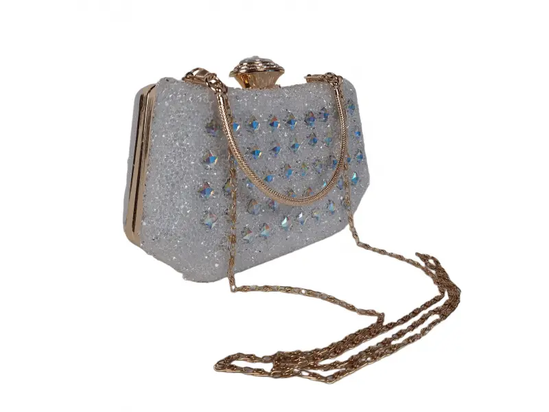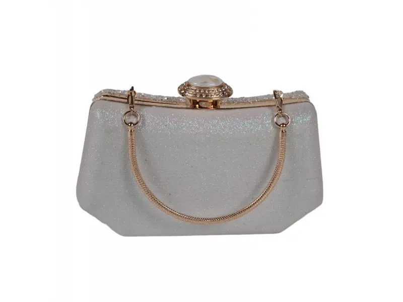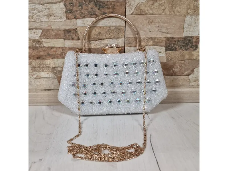 Geantă mică și frumoasă - Geantă de mână formală cu un singur compartiment. - Deschidere și închidere cu mecanism. - Margine aurie. - Mâner pentru transport în mână. - Mâner lung de tip lanț.