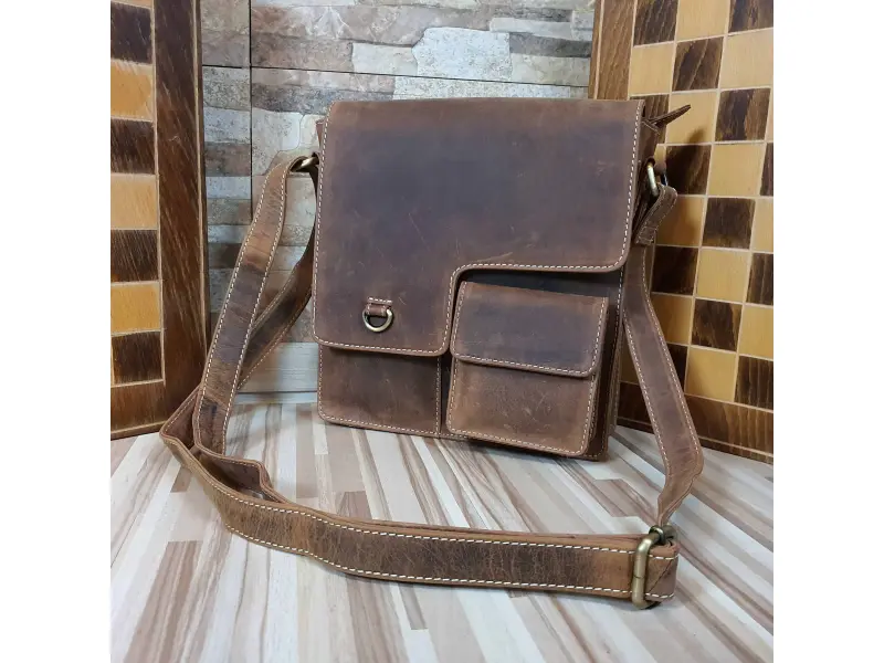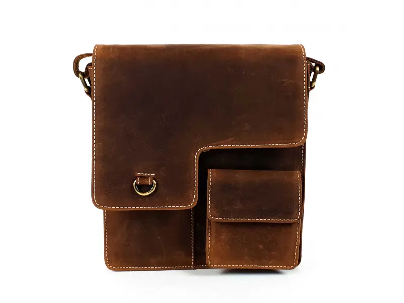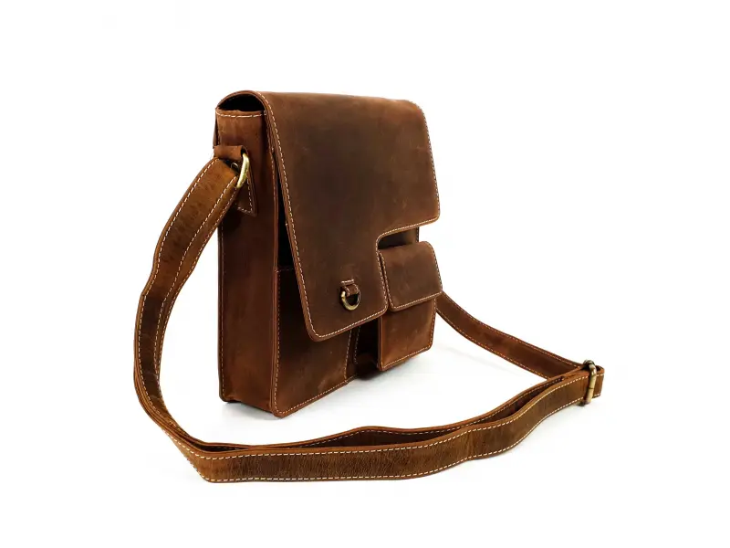 Geantă bărbătească de înaltă calitate, confecționată din piele naturală de vițel cu tratament special - Hunter. Geantă bărbătească maro, cu capac și închidere magnetică. Un compartiment principal cu fermoar, un buzunar interior cu fermoar, un loc pentru telefon și chei, un buzunar frontal cu fermoar, două compartimente frontale - unul cu închidere magnetică și un buzunar spate cu fermoar, un mâner reglabil din piele.