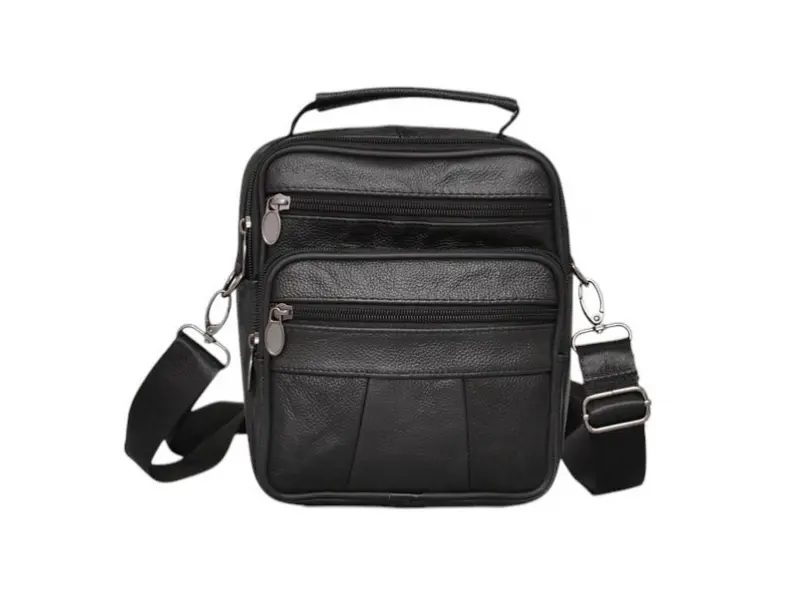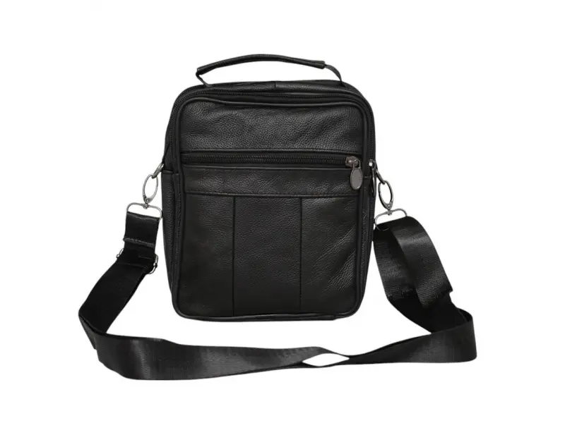 Geantă din piele pentru bărbați, de zi cu zi - Două compartimente principale cu fermoar. - Buzunar interior mic cu fermoar. - Trei buzunare frontale cu fermoar. - Buzunar spate cu fermoar. - Curea de umăr reglabilă. - Mâner pentru transport în mână.