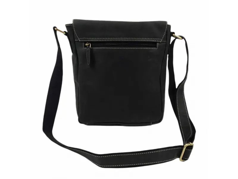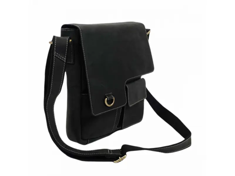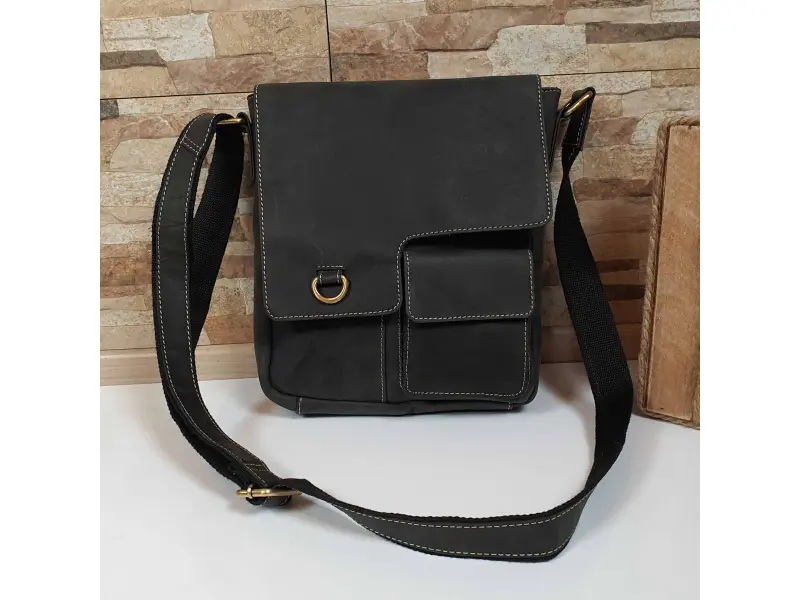 Geantă bărbătească de înaltă calitate, confecționată din piele naturală de vițel cu tratament special - Hunter. Geantă bărbătească neagră cu capac și închidere magnetică. Un compartiment principal cu fermoar, un buzunar interior cu fermoar, un loc pentru telefon și chei, un buzunar frontal cu fermoar, două compartimente frontale - unul cu închidere magnetică și un buzunar spate cu fermoar, un mâner reglabil din piele. Poate exista o ușoară diferență de culoare din cauza efectului vânătoresc.