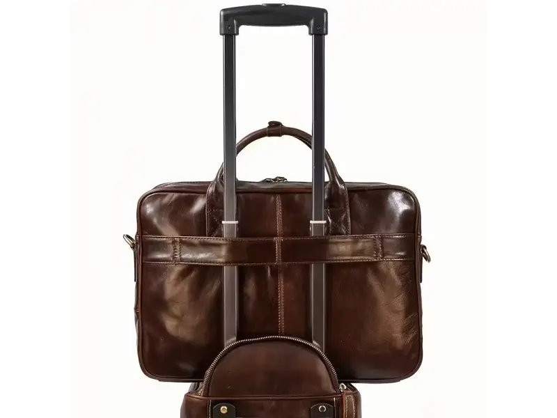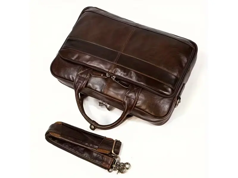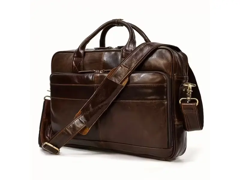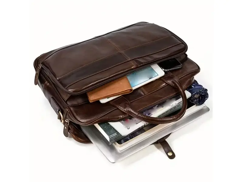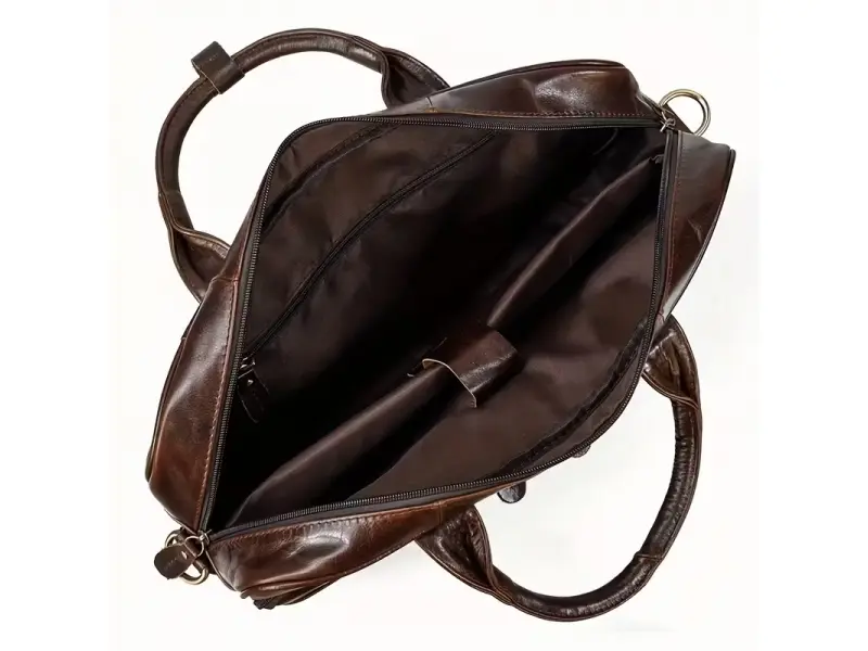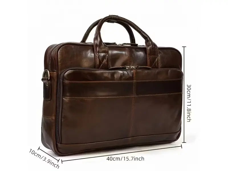 Geantă de lux pentru afaceri - Geantă din piele naturală. - Un compartiment principal cu fermoar. - Compartiment pentru laptop cu închidere adezivă. - Buzunar interior cu fermoar. - Buzunar frontal cu fermoar. - Compartiment telefon. - Compartiment pentru pixuri și creioane. - Departamentul de documente. - Mâner pentru așezarea unei valize. - Mânere confortabile pentru transport. - Mâner lung reglabil.