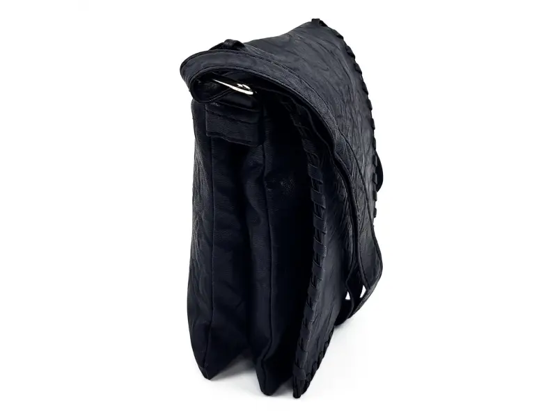 Geantă bărbătească din piele ecologică - stil șifonat. Geantă bărbătească model nou din piele artificială. Geantă bărbătească neagră cu capac, piele ecologică șifonată. Geantă bărbătească cu două compartimente - ePazar.bg