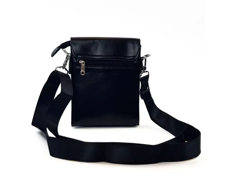 Geantă bărbătească din piele ecologică, model pătrat - mică. Geantă bărbătească nouă din piele ecologică. Geantă bărbătească mică, neagră, din piele artificială, cu mâner lung din poliester, de la magazinul online ePazar.bg
