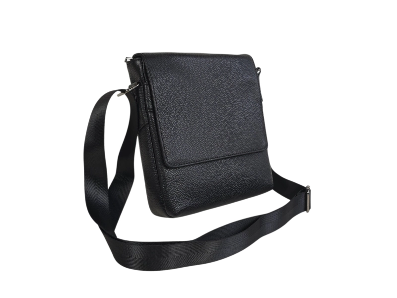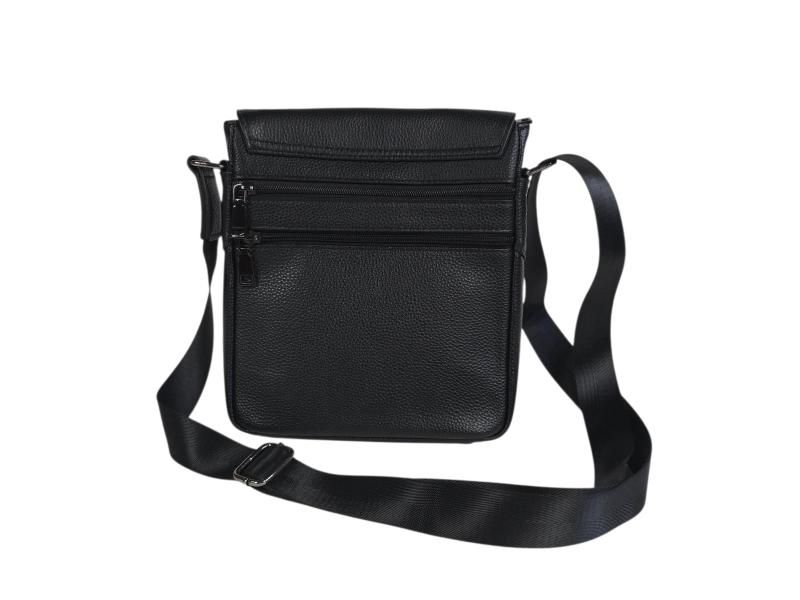 Geantă bărbătească din piele naturală de înaltă calitate. Geantă bărbătească elegantă, cu capac, compartimente practice și fermoare rezistente. Geantă bărbătească neagră, cu mâner lung reglabil și închidere magnetică.