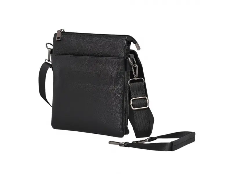 Geantă elegantă din piele pentru bărbați - Două compartimente principale cu fermoar. - Buzunar intermediar fără fermoar. - Buzunar interior mic cu fermoar. - Capac cu închidere magnetică. - Buzunar sub glugă. - Buzunar spate cu fermoar. - Mâner. - Curea de umăr reglabilă.