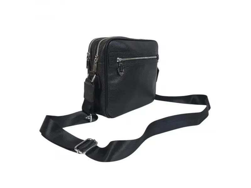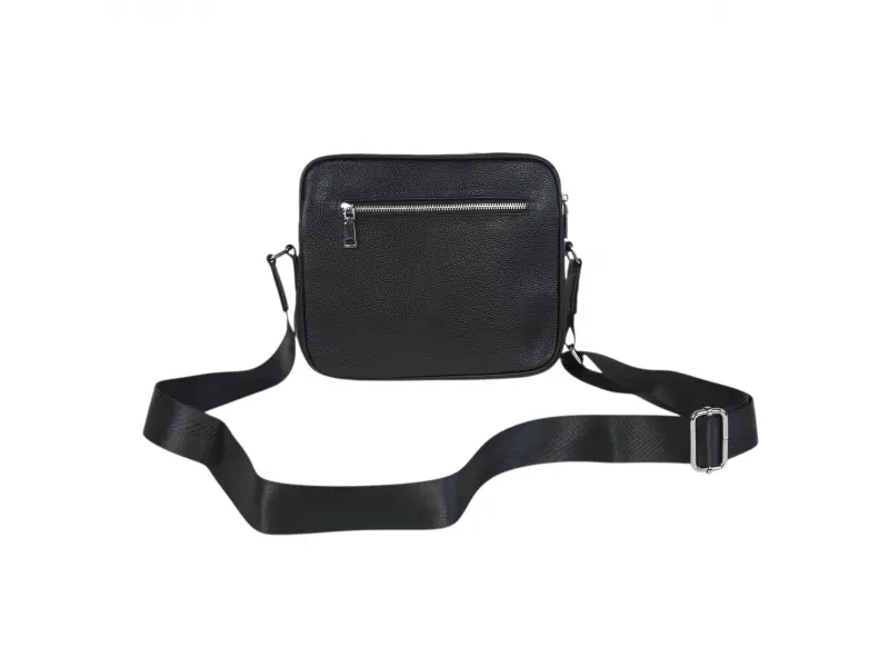 Geantă elegantă din piele pentru bărbați - Două compartimente principale cu fermoar. - Buzunar interior mic cu fermoar. - Buzunar interior fără fermoar. - Buzunar frontal cu fermoar. - Buzunar spate cu fermoar. - Curea de umăr reglabilă.
