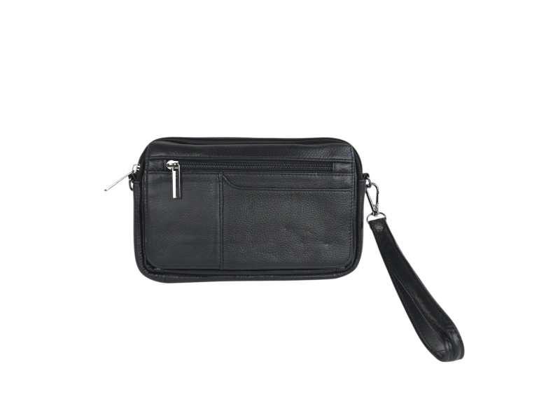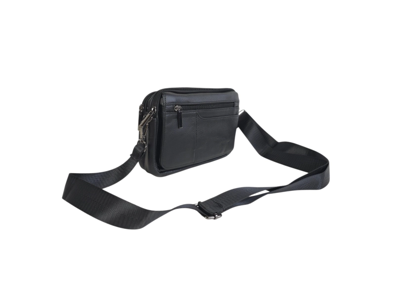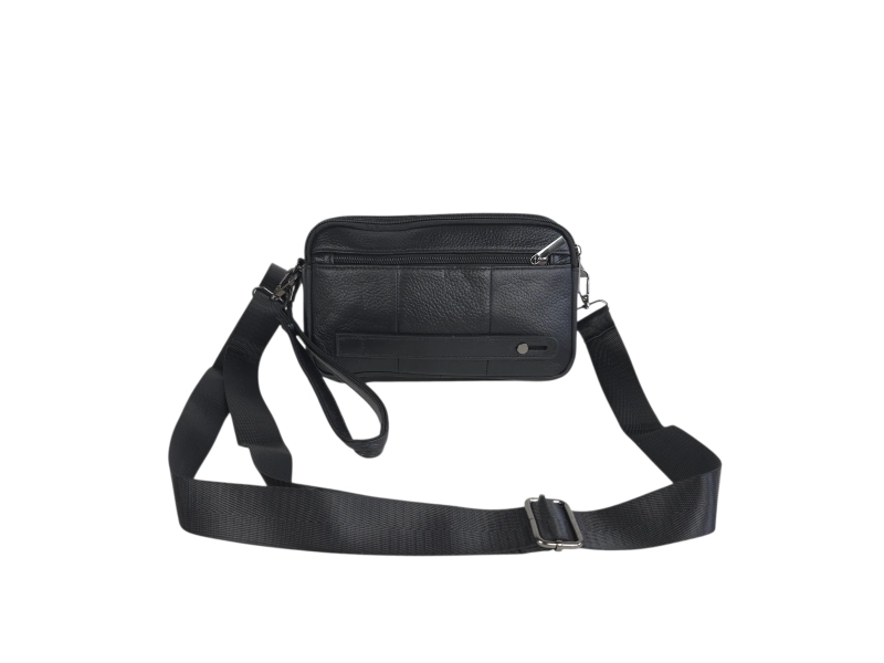 Geantă de mână din piele pentru bărbați - Două compartimente principale cu fermoar. - Buzunar interior mic cu fermoar. - Buzunar interior mic, fără fermoar. - Buzunar frontal cu fermoar - Buzunar spate cu fermoar. - Mâner pentru transport în mână. - Opțiune pentru o curea de umăr lungă reglabilă.