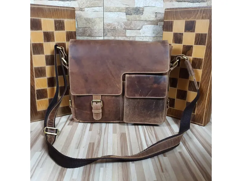 Geantă bărbătească de înaltă calitate, confecționată din piele naturală de vacă, tip hunter. Geantă bărbătească mare, cu capac cu închidere magnetică, compartiment interior frontal mare cu fermoar, două buzunare frontale, compartiment principal cu fermoar, buzunar interior mic cu fermoar și compartiment pentru chei, telefon și pixuri. Portofel interior mic din piele și material textil, buzunar spate cu fermoar și mâner lung reglabil. Poate exista o ușoară diferență de culoare din cauza efectului vânătoresc.