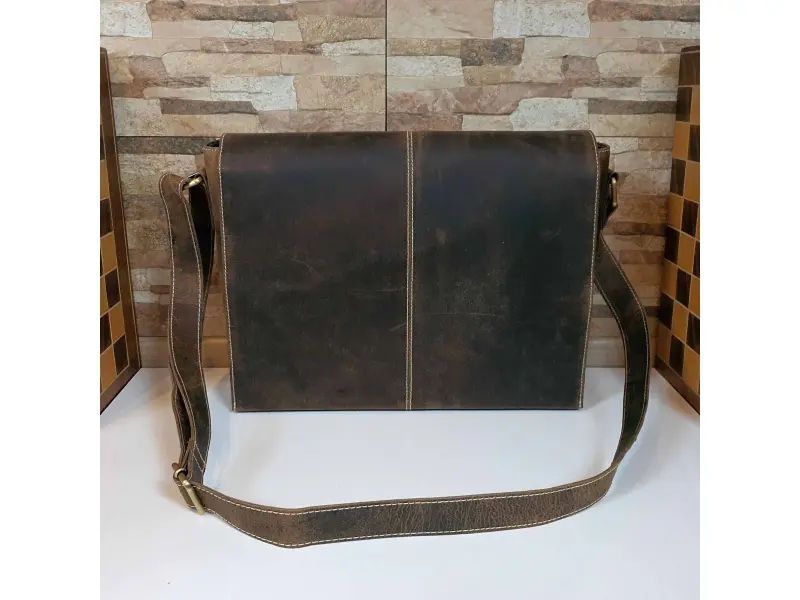 Geantă mare din piele pentru bărbați Geantă bărbătească de înaltă calitate, confecționată din piele naturală hunter tratată special. Geantă mare cu capac cu închidere magnetică, un compartiment principal cu fermoar, o mică despărțitoare interioară frontală, un buzunar interior cu fermoar, compartimente pentru telefon și documente, compartimente pentru pixuri sau creioane, un buzunar sub capac cu fermoar și un buzunar spate cu fermoar. Geantă maro cu mâner confortabil, lung și reglabil din piele.